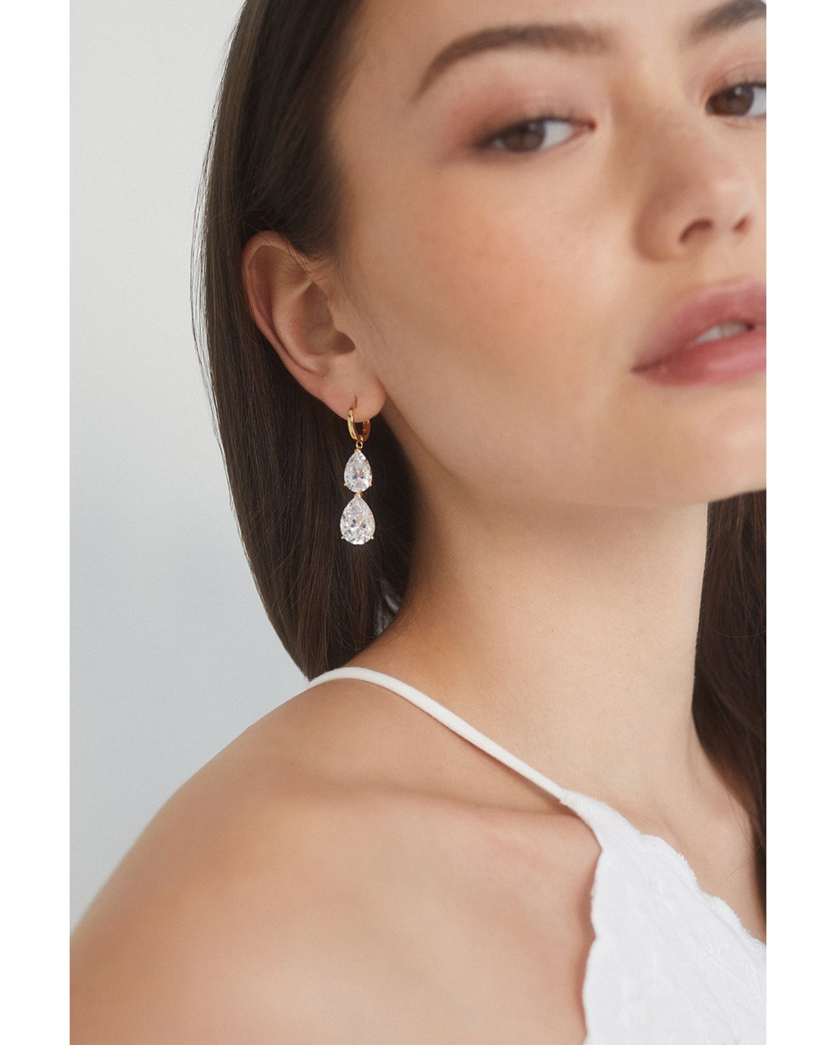 These Cubic Zirconia Pear Double Drop Earrings by Nadri are a timeless and versatile addition to your jewelry collection. Featuring two cascading pear-cut cubic zirconia, they add graceful sparkle to both formal and casual outfits.