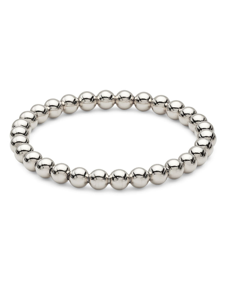 Crafted in silver-tone or 18K gold-plated brass. Features a 6.85' circumference with a stretch closure for easy wear.