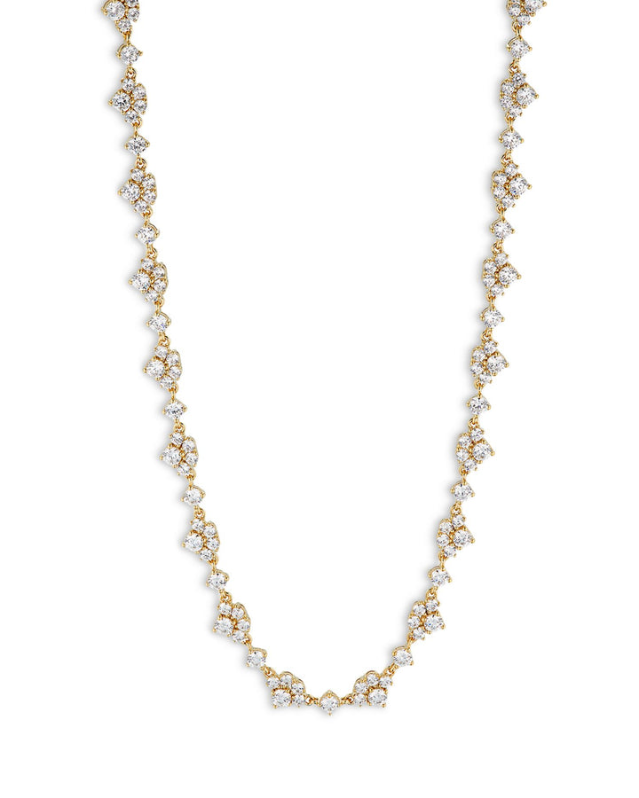 Crafted in 18K gold-plated brass with cubic zirconia accents. Measures 16"L and secures with a lobster clasp closure.