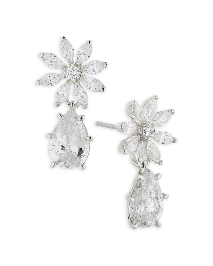 Wildflower Cubic Zirconia Flower Drop Earrings in Rhodium Plated