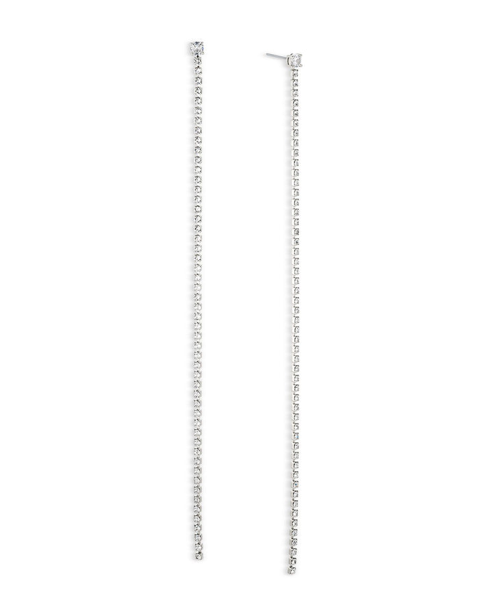 Crafted in rhodium-plated brass with cubic zirconia accents. Measure 6.1"L and feature post-back closures for secure wear.