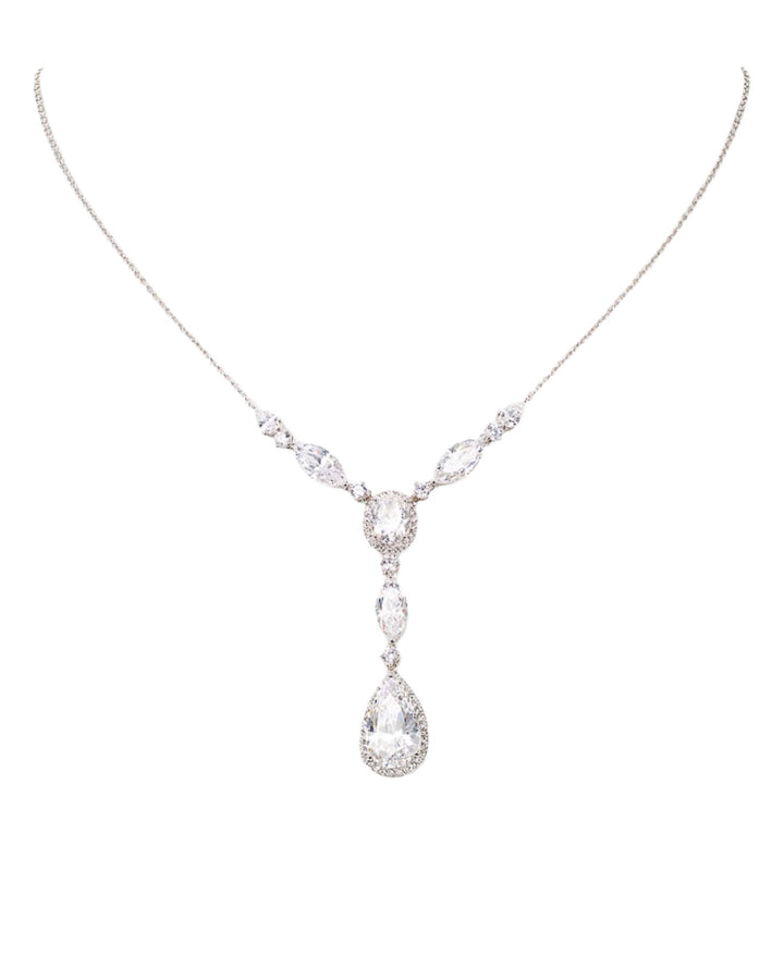 This Pear Shaped Drop Lariat Necklace by Nadri is a sophisticated evening accessory. Featuring ornate teardrop pendants, it pairs beautifully with an elegant dress or evening ensemble for a timeless look.