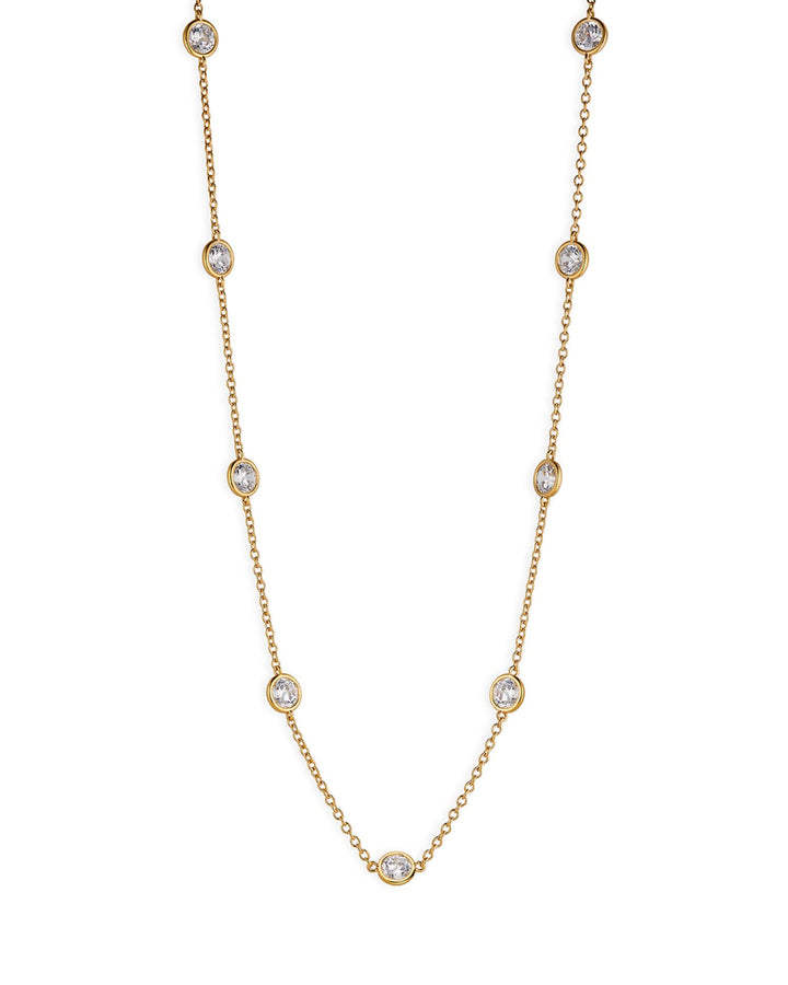 Crafted in 18K gold-plated brass with cubic zirconia accents. Adjustable length measures 16'-18' and secures with a lobster clasp closure.