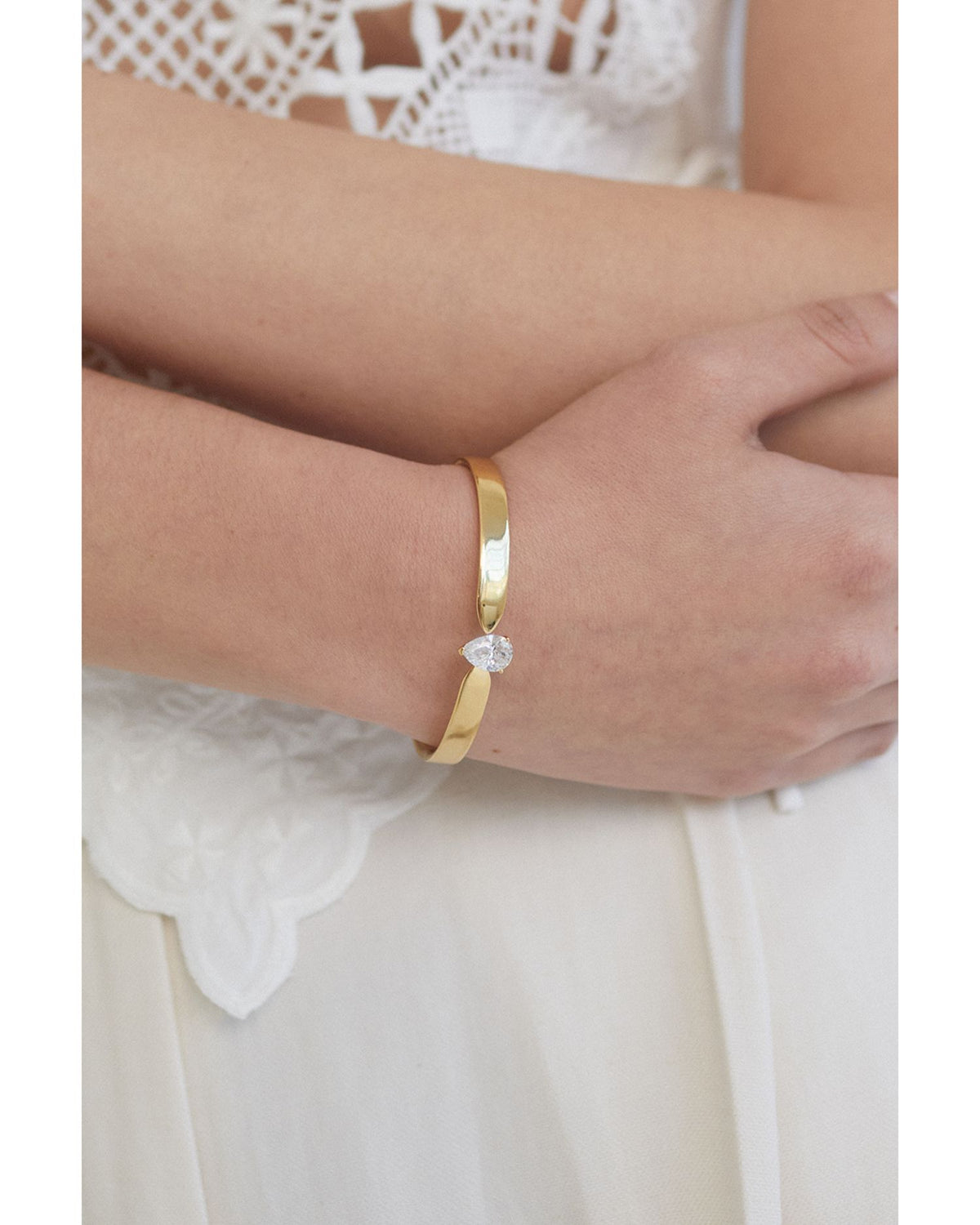 Cubic Zirconia Pear Solitaire Bangle Bracelet