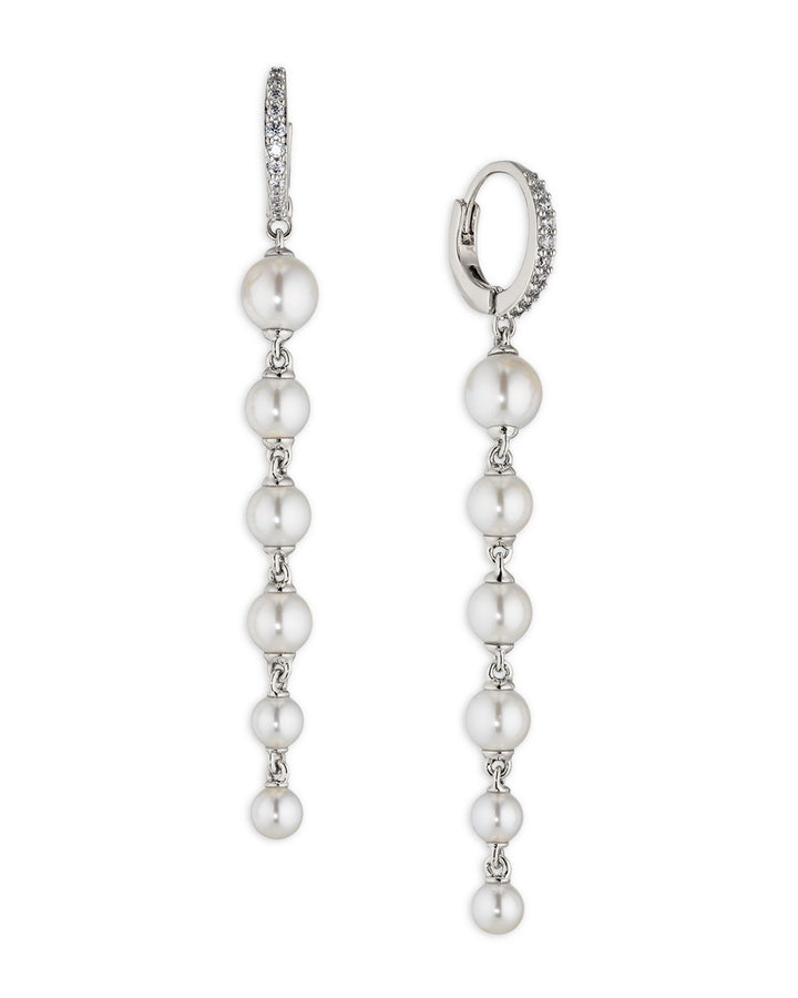 Made in silver-tone or 18K gold-plated brass with cubic zirconia and nacre pearl accents. Measure 2.5'L and feature snap-post closures for secure and comfortable wear.
