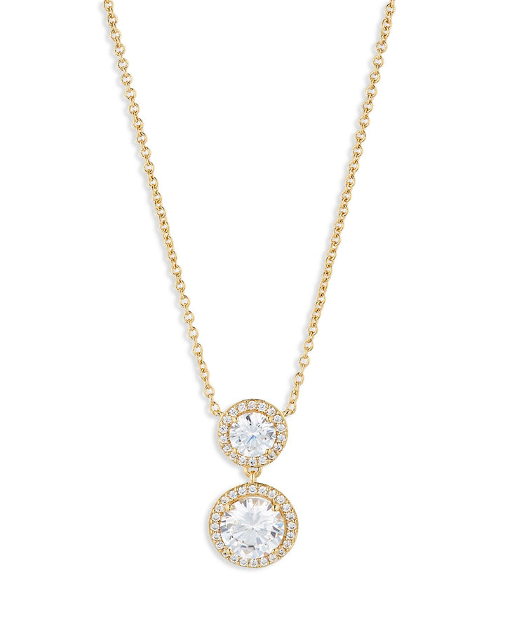 Round Halo Drop Necklace in 18K Gold Plated or Rhodium Plated, 16'