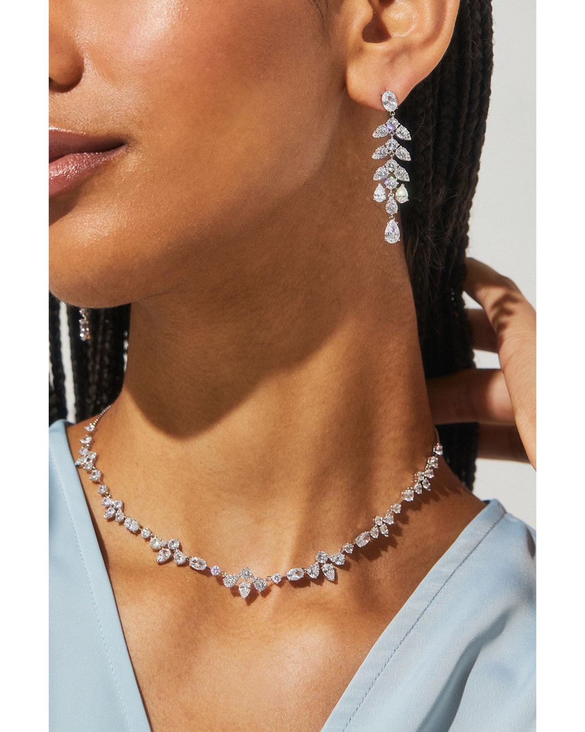These Chandelier Earrings by Nadri are a timeless and glamorous choice for formal occasions. Featuring cascading cubic zirconia, they add sophisticated sparkle and movement to any elegant ensemble.