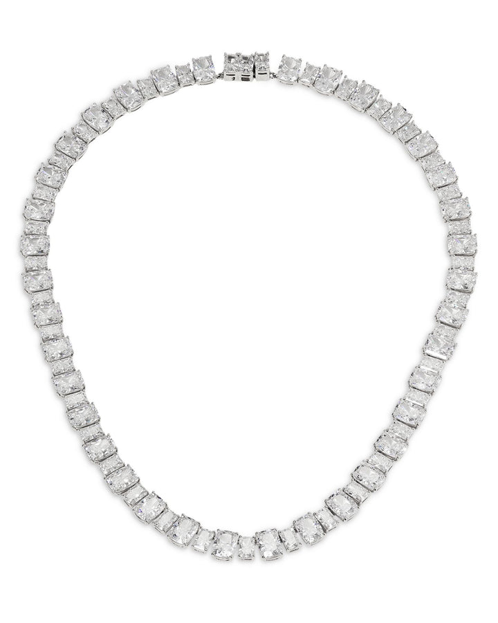 Cubic Zirconia Tennis Necklace in Rhodium Plated, 15.5"