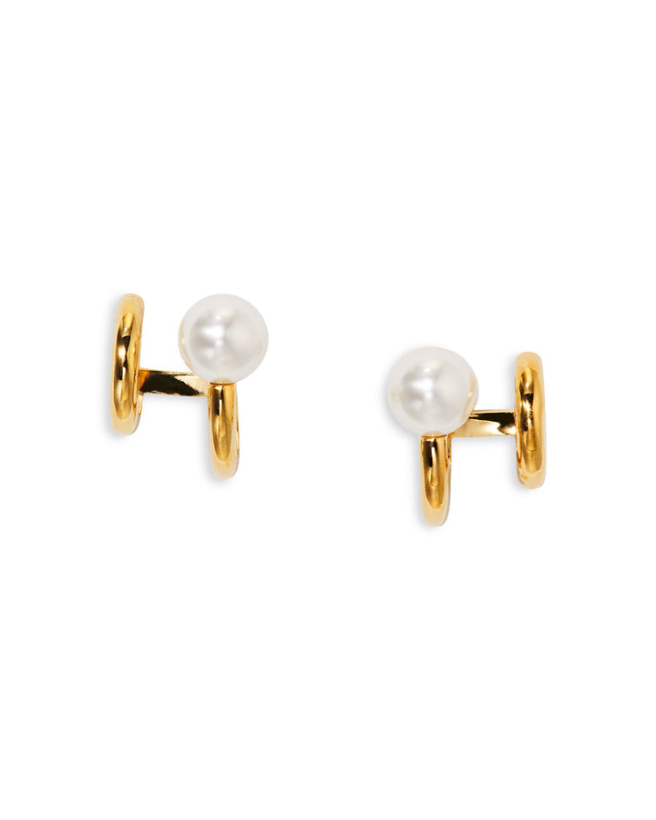 Crafted in 18K gold-plated brass with glass pearl accents. Measure 0.625'L and feature post-back closures for secure wear.