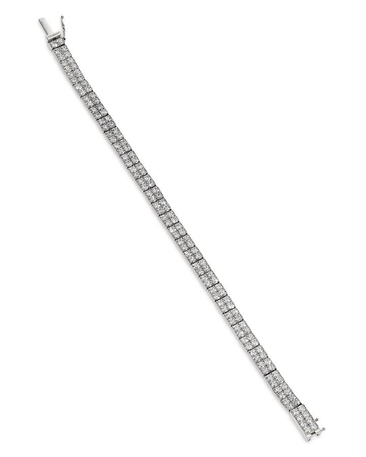 Cubic Zirconia Double Row Flex Bracelet in Rhodium Plated
