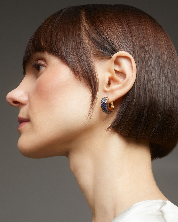 Nano Crystal & Stone Huggie Hoop Earrings in 18K Gold Plated & Ruthenium Plated