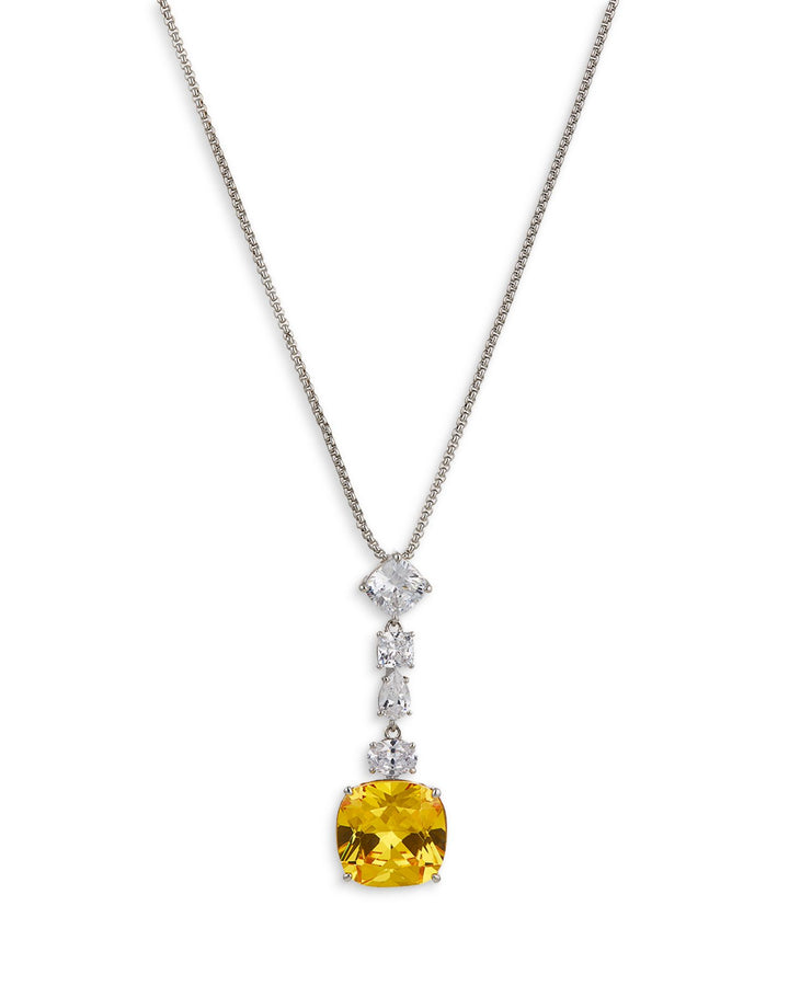 Soleil Cubic Zirconia & Nano Crystal Lariat Necklace in Silver Plated, 16"-18"