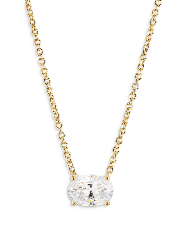 Crafted in rhodium-plated or 18K gold-plated brass with cubic zirconia accents. Adjustable length of 16'-18' with a 0.25'L pendant. Secured with a spring ring closure.