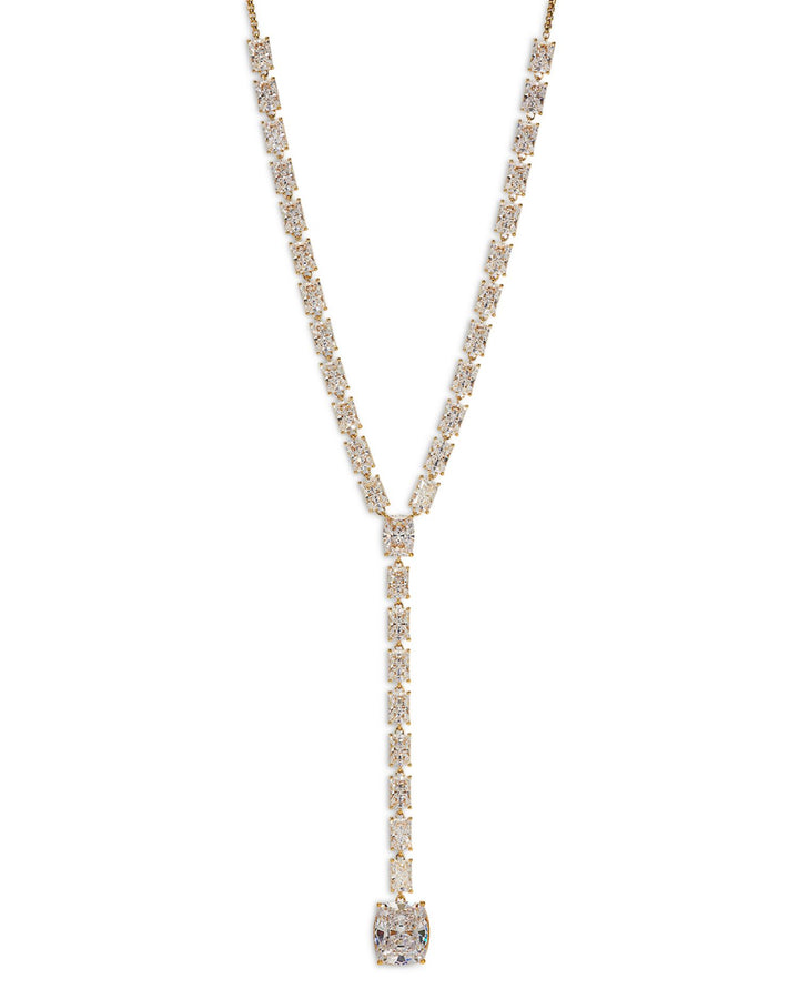 Cubic Zirconia Lariat Necklace in 18K Gold Plated, 16"-18"
