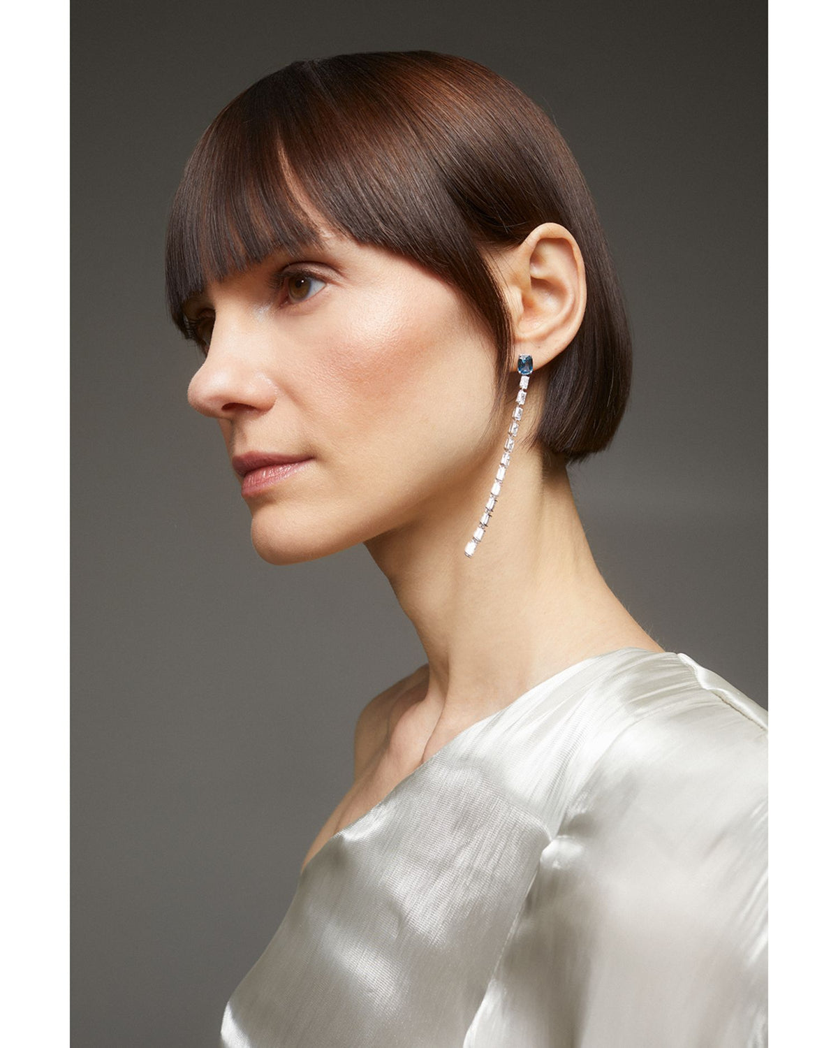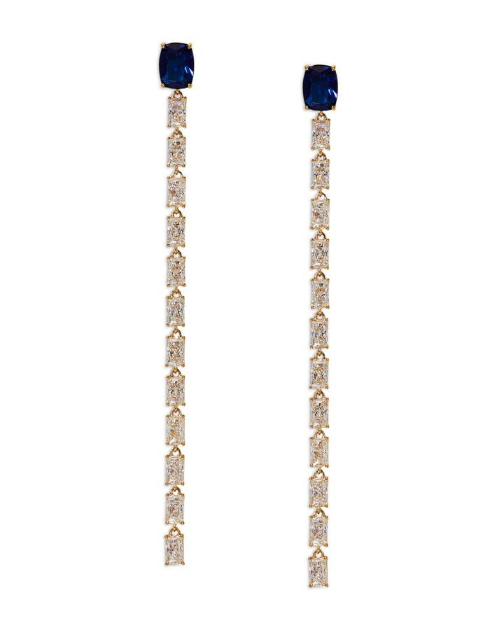 Blue Crystal & Cubic Zirconia Linear Drop Earrings in 18K Gold Plated