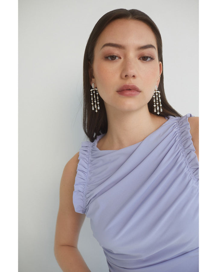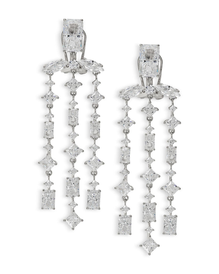 Rare Jewels Cubic Zirconia Triple Row Chandelier Earrings in Rhodium Plated