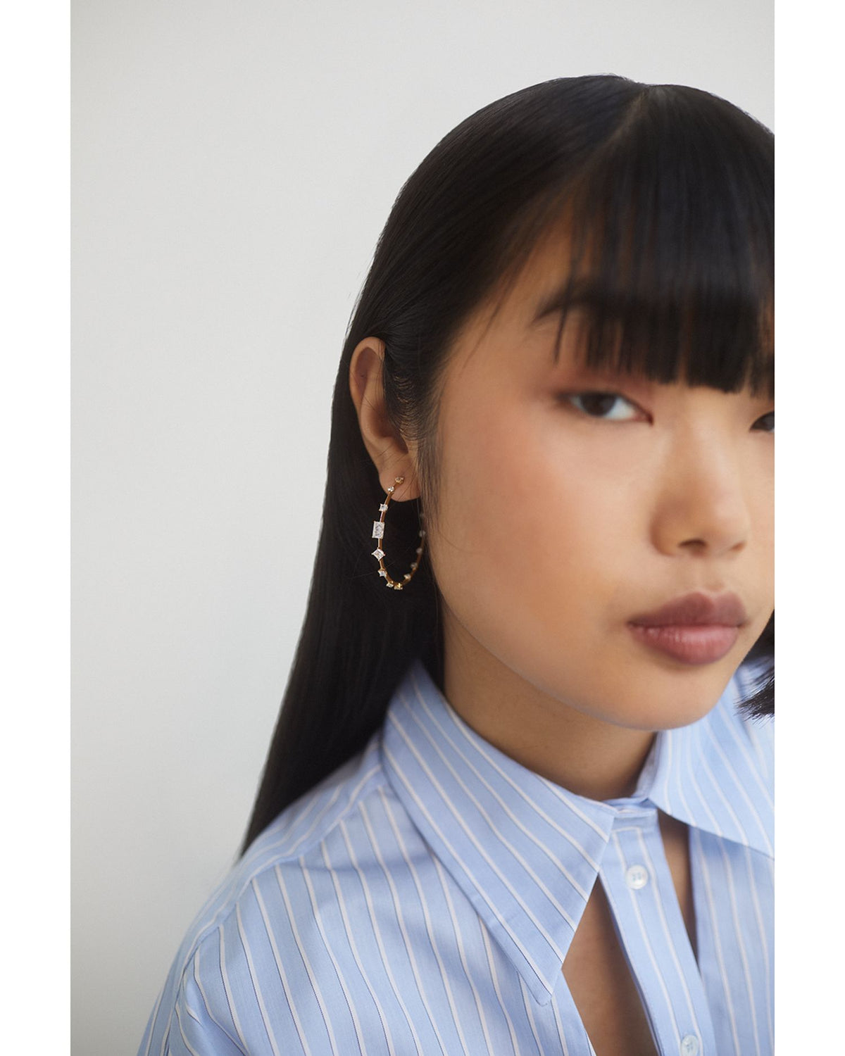 Crafted in 18K gold-plated brass with cubic zirconia accents. Measure 1.75' in diameter and feature post-back closures for secure wear.
