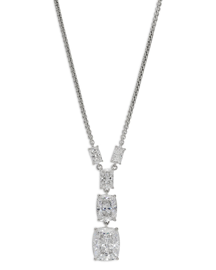 Cubic Zirconia Lariat Necklace in Rhodium Plated, 16"-20"