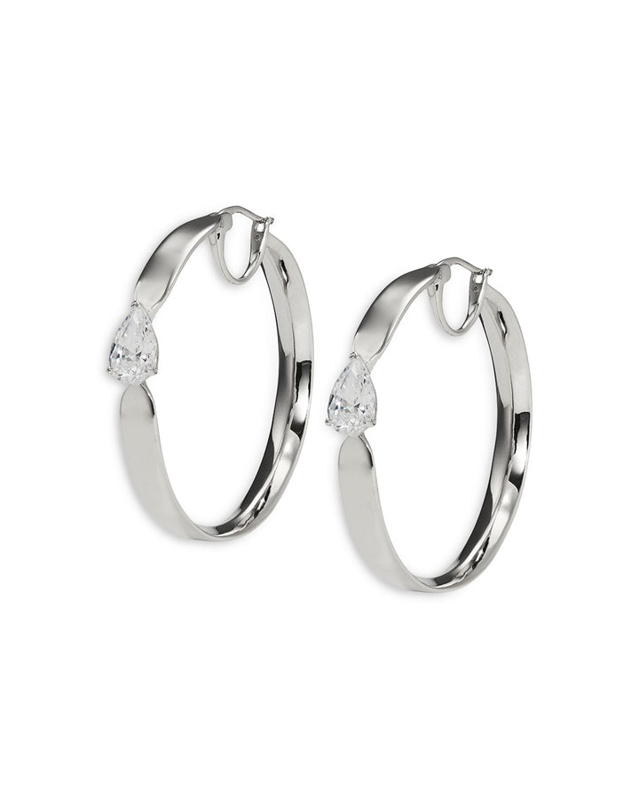 Cubic Zirconia Pear Solitaire Medium Hoop Earrings