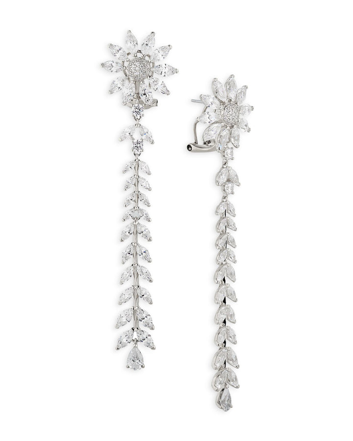 Wildflower Cubic Zirconia Daisy Linear Drop Earrings in Rhodium Plated