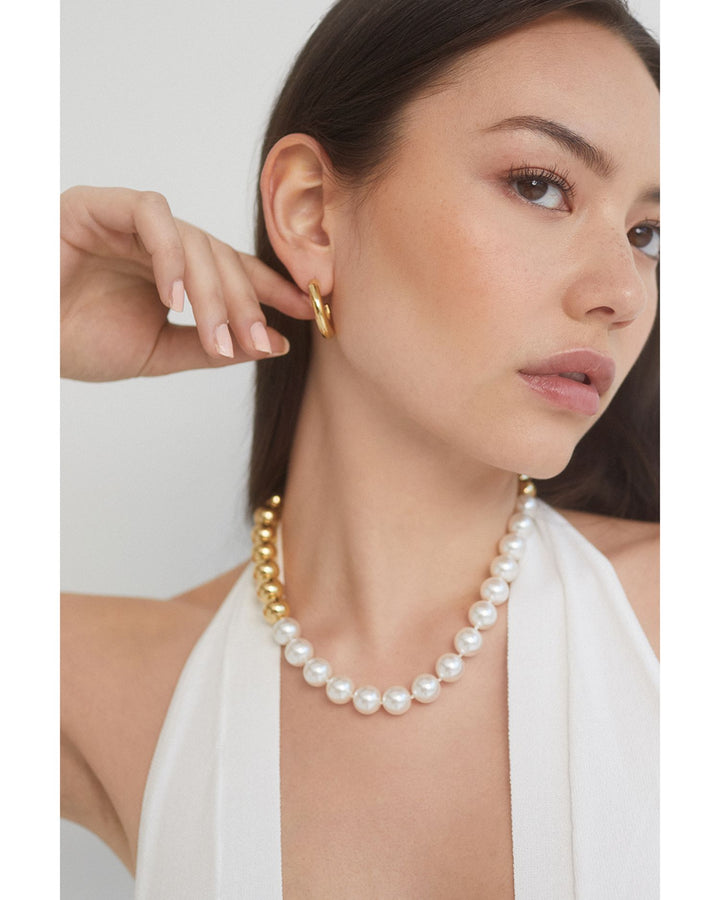 Farrah Imitation Pearl Beaded Collar Necklace in 18K Gold Plated, 19"