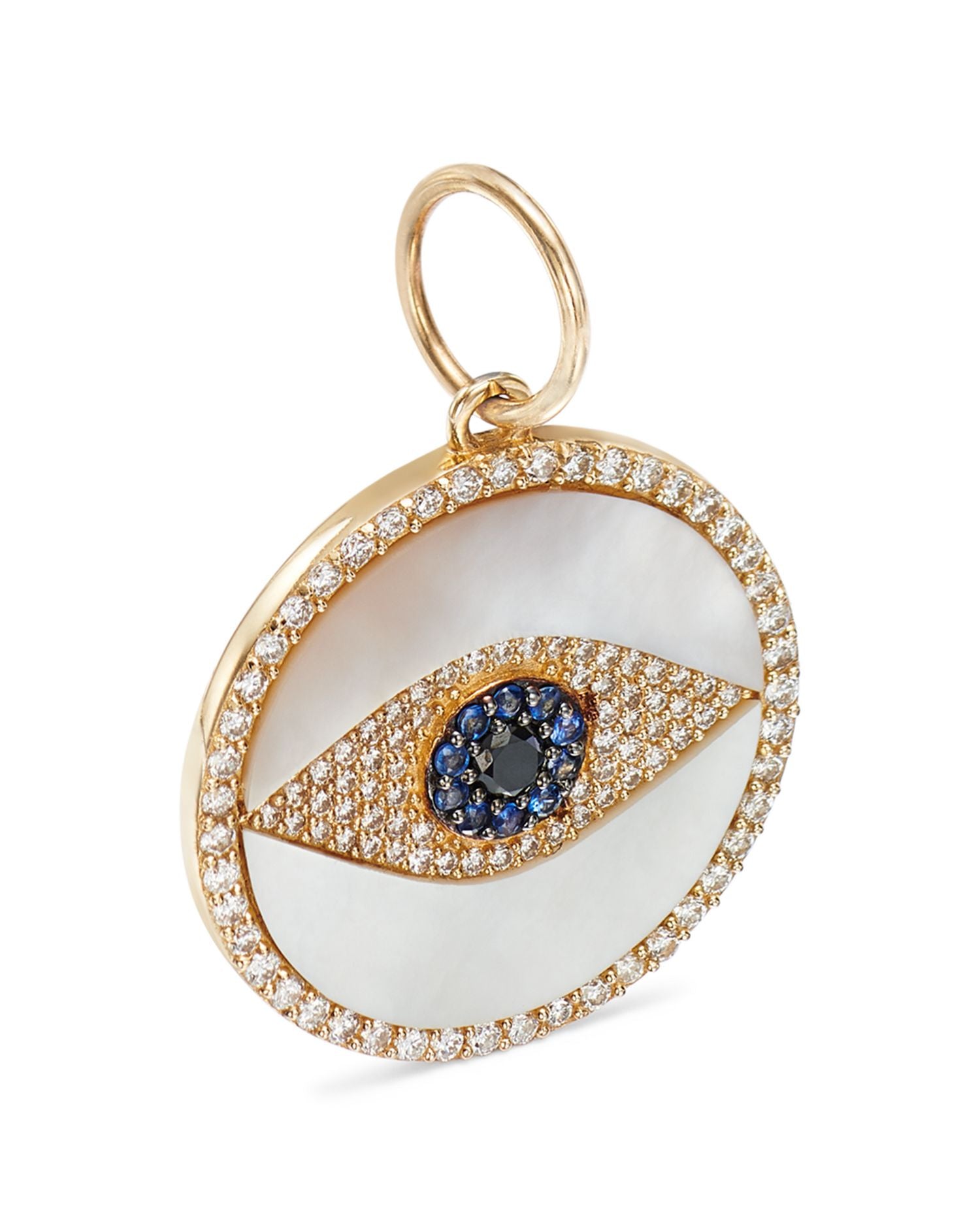 This 14K Yellow Gold Eye of Protection Diamond & Sapphire Pendant by Nina Gilin features a captivating design with diamonds and sapphires set in 14K yellow gold. Perfect for adding a touch of elegance and protection to your jewelry collection.