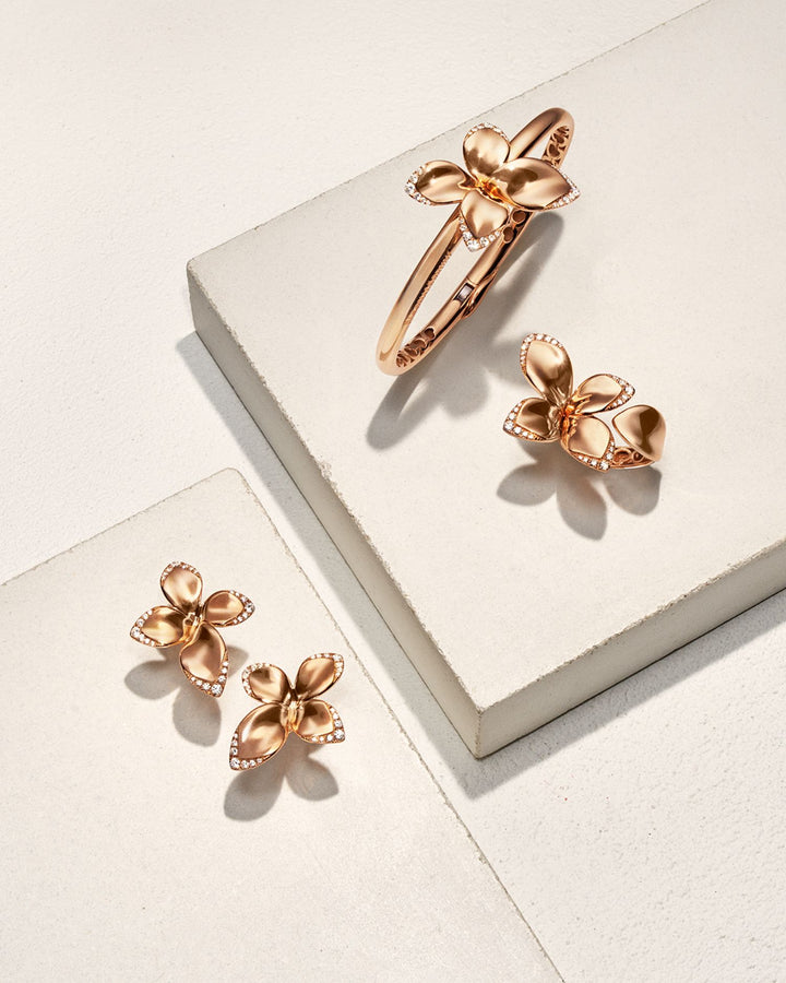 18K Rose Gold Giardini Segreti Diamond Small Flower Bangle Bracelet