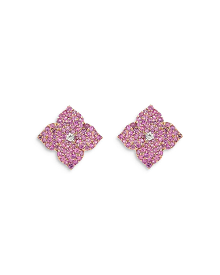 18K Rose Gold Fiore Pink Sapphire & Diamond Pavé Flower Small Stud Earrings