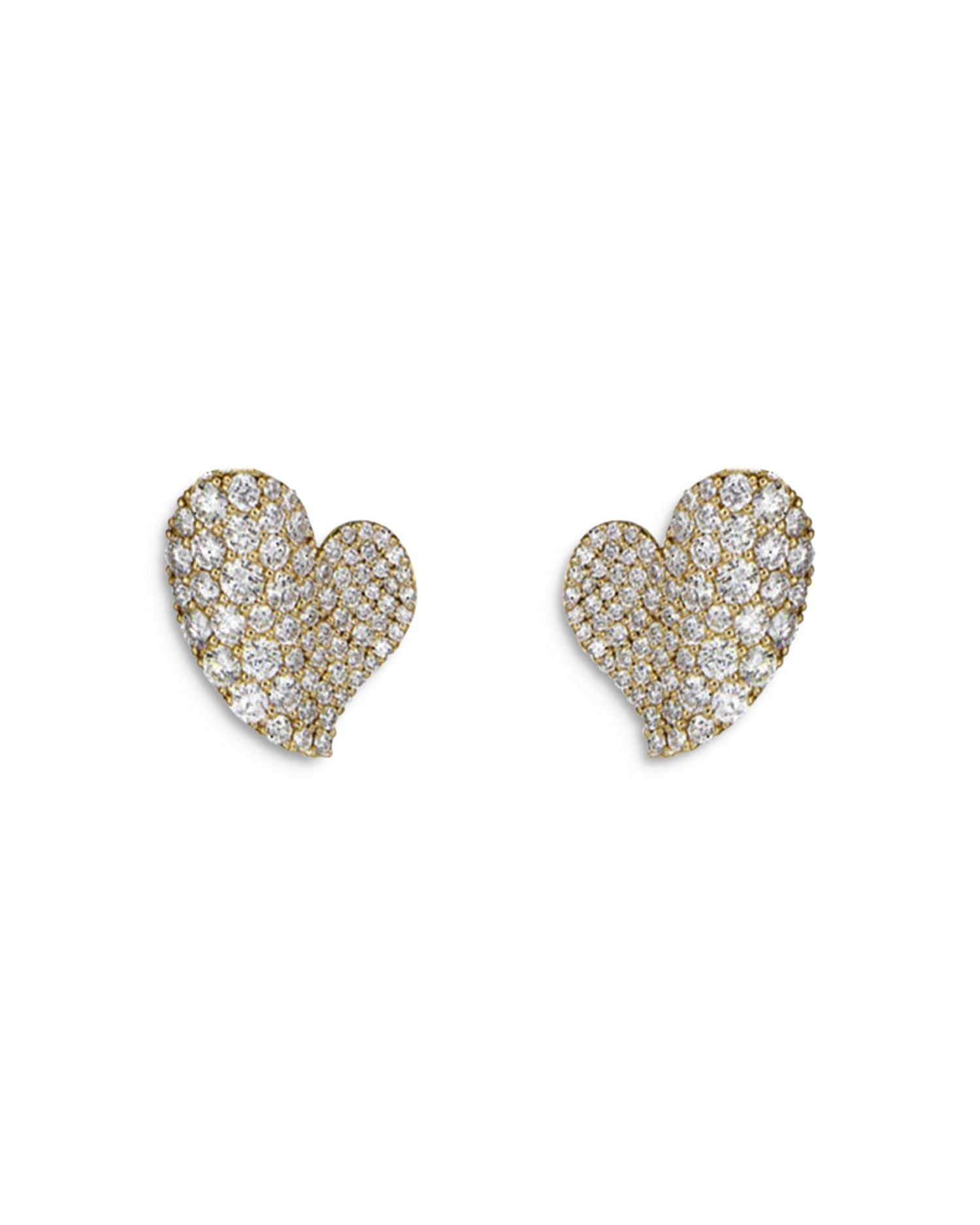 18K Yellow Gold Wave Heart Diamond Pavé Stud Earrings