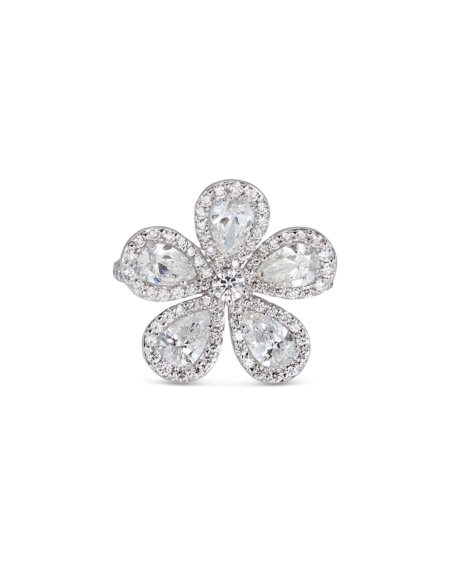 18K White Gold Classic Flower Ring with Diamonds, 2.81 ct. t.w.