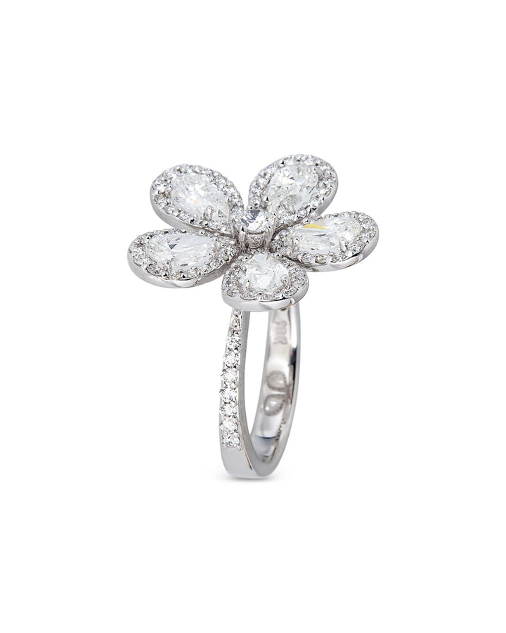 This Classic Flower Ring with Diamonds by Piranesi from the Fiore collection is a stunning celebration of natural beauty. Featuring round and pear-shaped diamonds arranged in a flower motif, this polished white gold ring is a breathtaking addition to any collection.