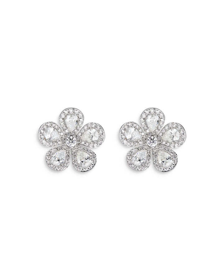 18K White Gold Classic Flower Earrings with Diamonds, 4.42 ct. t.w.