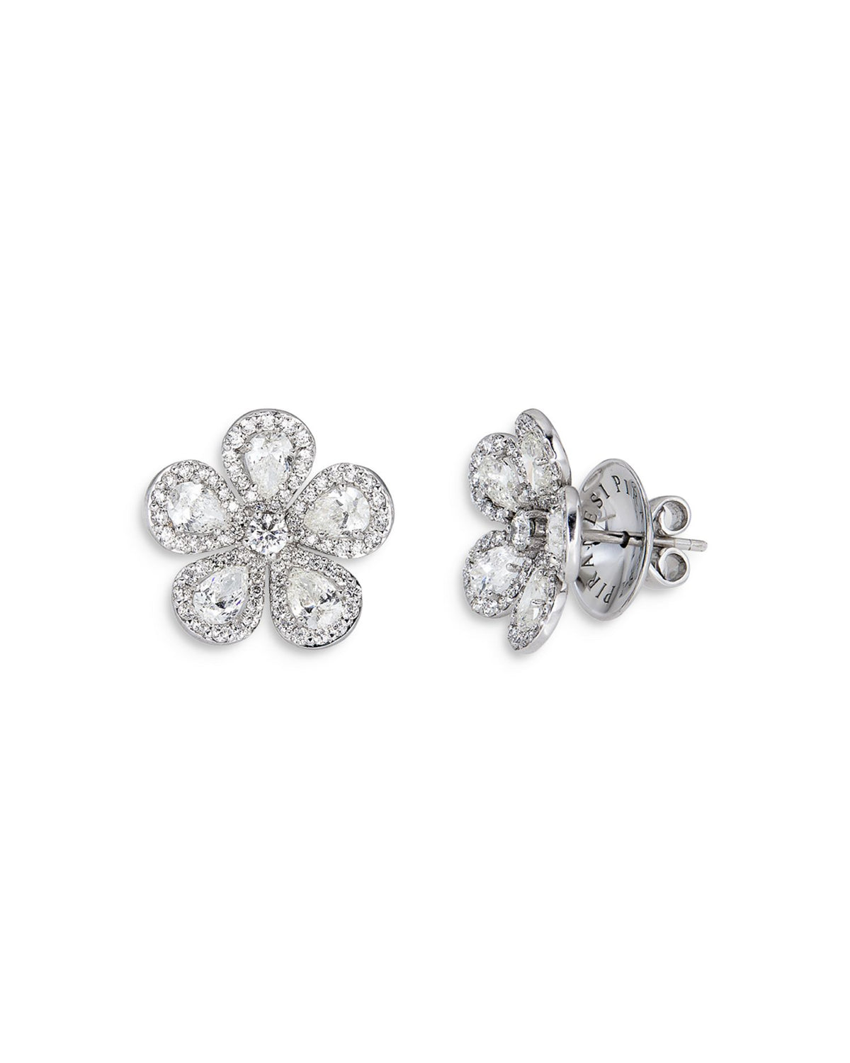 These Classic Flower Earrings with Diamonds by Piranesi from the Classic Flower collection are a timeless design. Featuring round and pear-shaped diamonds arranged in a floral motif, these white gold stud earrings exude sophistication and grace.