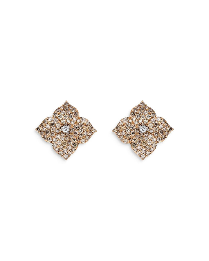 These Champagne & White Diamond Flower Earrings by Piranesi from the Piranesi Flower collection are a luxurious and captivating design. Featuring champagne diamonds in a large flower motif with a white diamond center, these rose gold earrings are perfect for adding sophistication to your style.