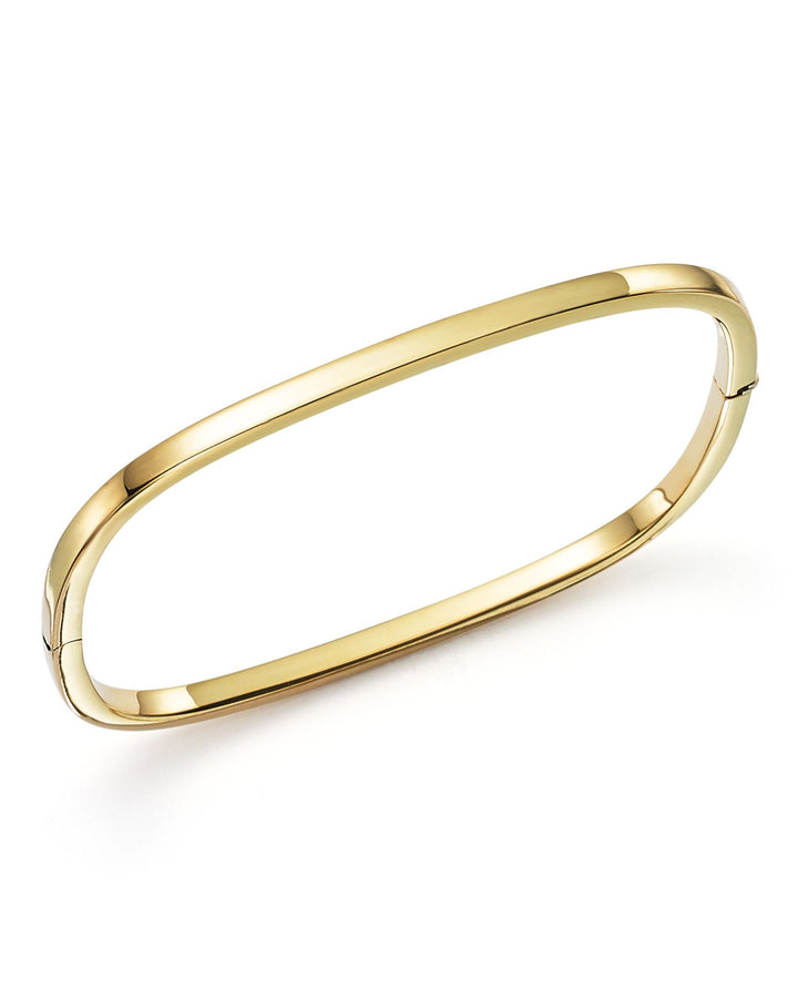 This Square Bangle by Roberto Coin blends timeless elegance with a modern silhouette. Its clean lines and polished 18K yellow gold design make it a versatile and sophisticated accessory.