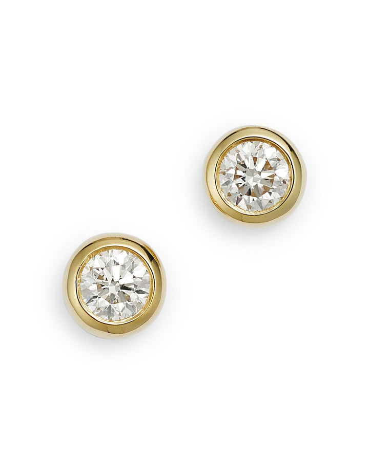 18K Yellow Gold Diamond Bezel Stud Earrings