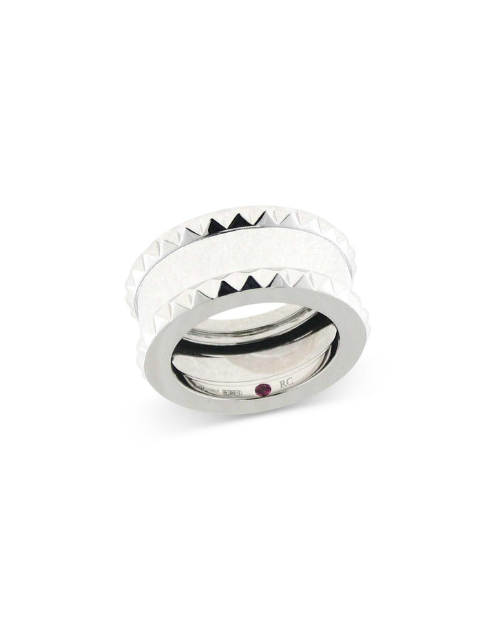 18K White Gold Obelisco Polished Pyramid Bordered Statement Ring