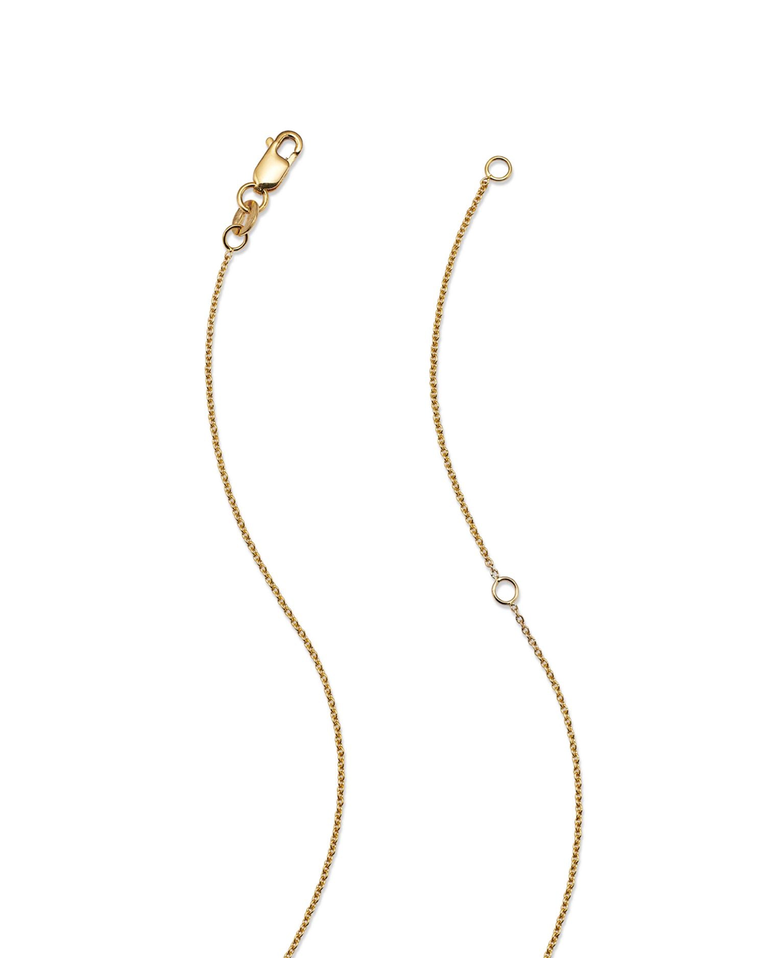 Handcrafted in 18K yellow gold. Features diamonds totaling 0.11 ct. t.w. Pendant measures 0.3'L on a 16'-18'L adjustable chain with a lobster clasp. Includes the signature synthetic ruby detail on the interior. Made in Italy.