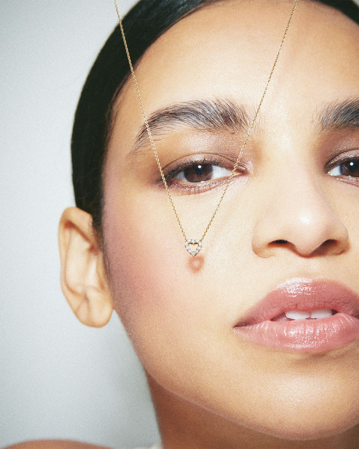 This Baby Heart Pendant Necklace by Roberto Coin is a delicate and romantic piece. The diamond-set heart pendant hangs gracefully on a slim gold chain, making it a meaningful gift or an everyday token of love.