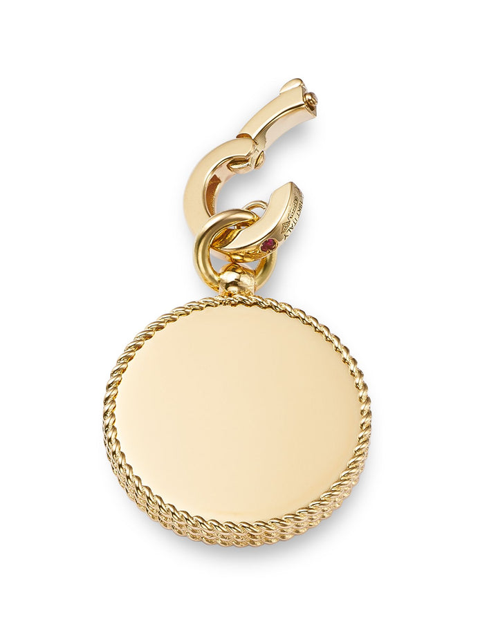 Handcrafted in 18K yellow gold. Features diamonds totaling 0.16 ct. t.w. (G-H color, SI clarity). Pendant measures 0.7'L. Made in Italy.