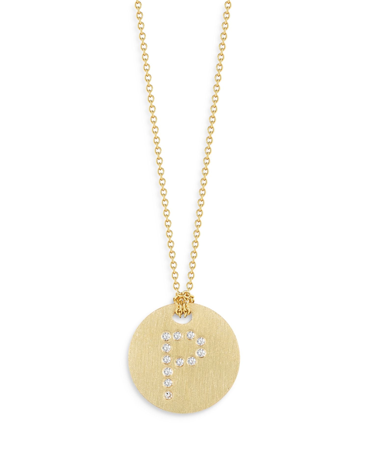18K Yellow Gold Tiny Treasures Diamond Initial P Disc Pendant Necklace, 16-18'