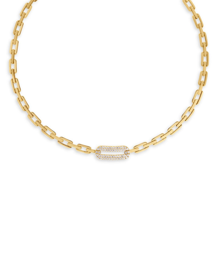 18K Yellow Gold Navarra Diamond Pavé Chain Link Collar Necklace, 18'