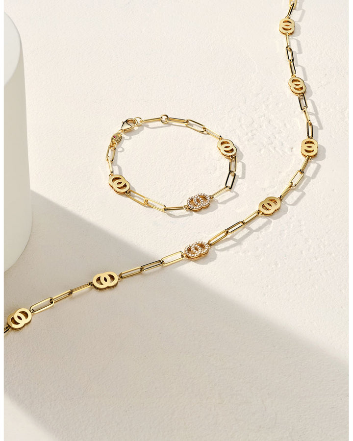 18K Yellow Gold Double O Paperclip Link Bracelet with Diamonds - 150th Anniversary Exclusive