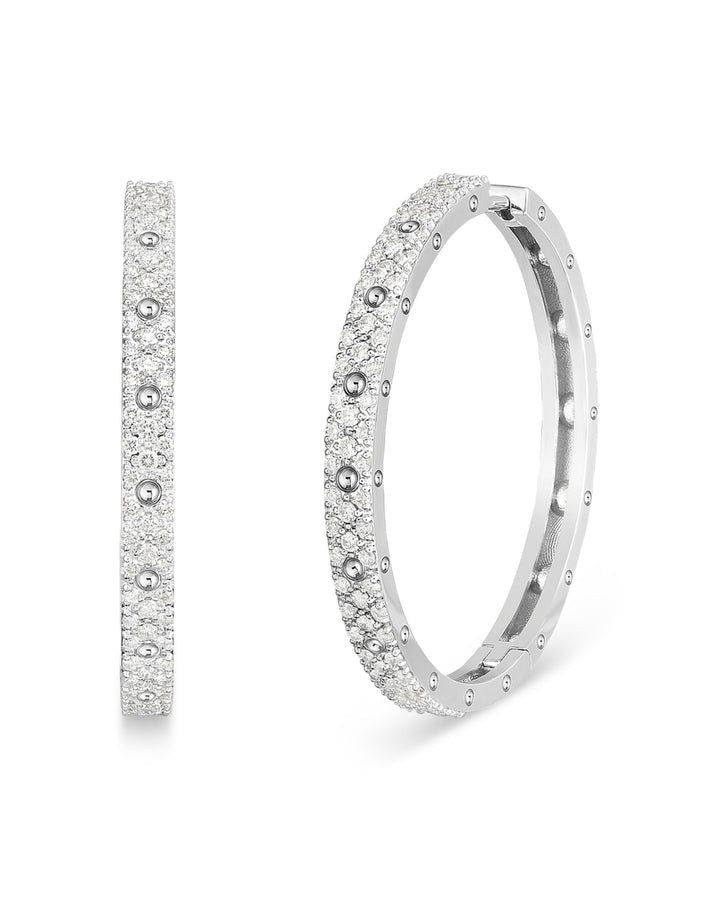 These Symphony Diamond Medium Hoop Earrings by Roberto Coin are a breathtaking accessory. From the Symphony collection, their shimmering diamond pavé design and medium size make them perfect for elevating any outfit.
