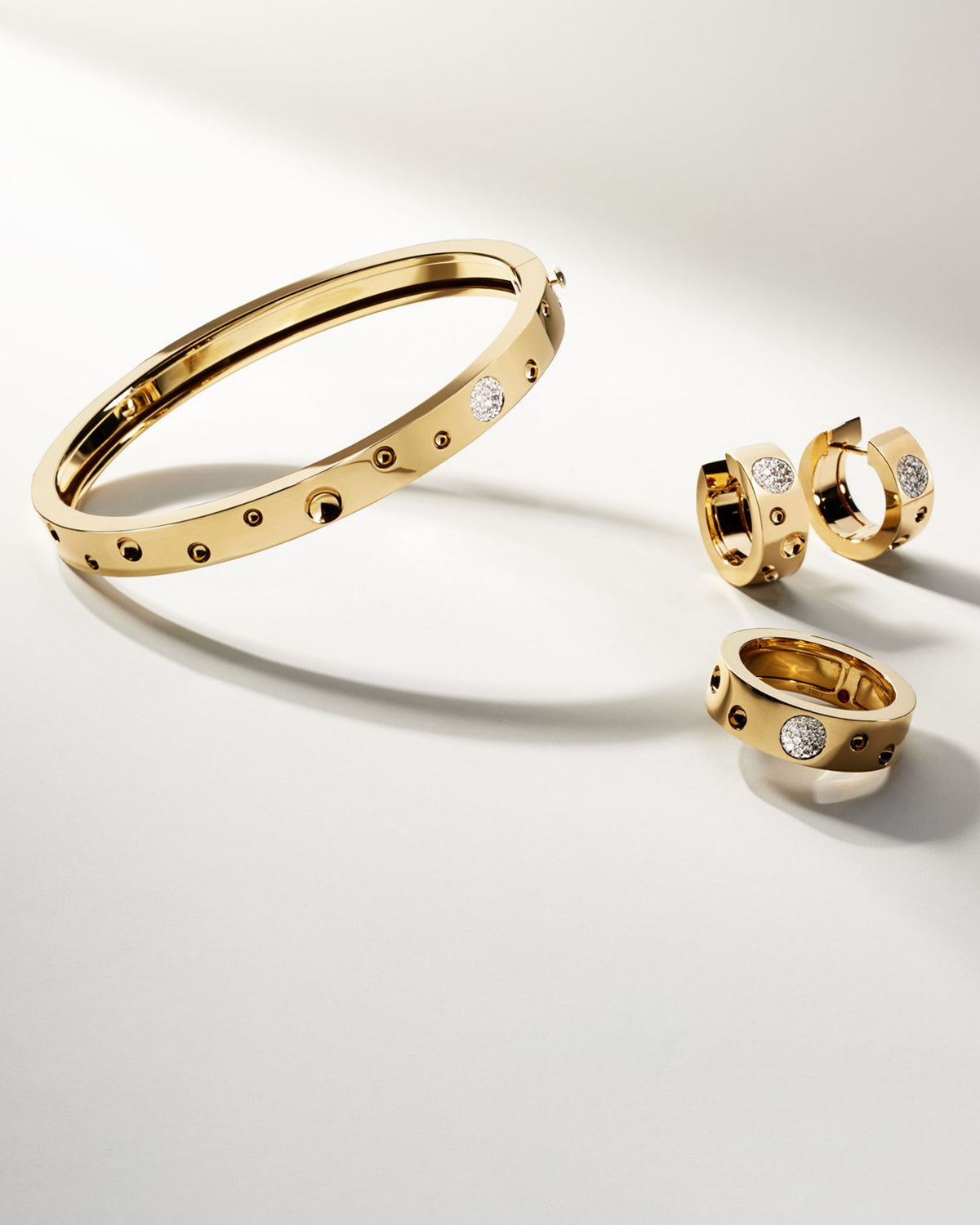 These Pois Moi Luna Diamond Hoop Earrings by Roberto Coin showcase modern elegance. From the Pois Moi Luna collection, their lunar-inspired wide design and diamond accents make them a bold yet refined statement piece.