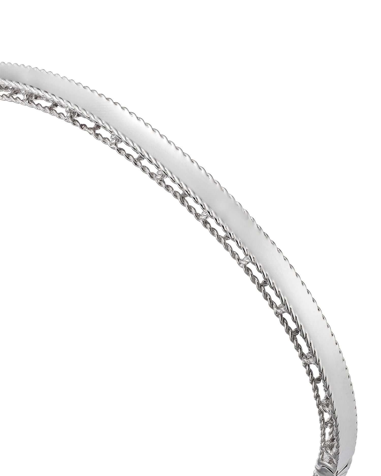 This Symphony Princess Bangle Bracelet by Roberto Coin is an elegant and textural piece. From the Symphony Princess collection, its unique side profile and polished design make it a sophisticated addition to your jewelry collection.