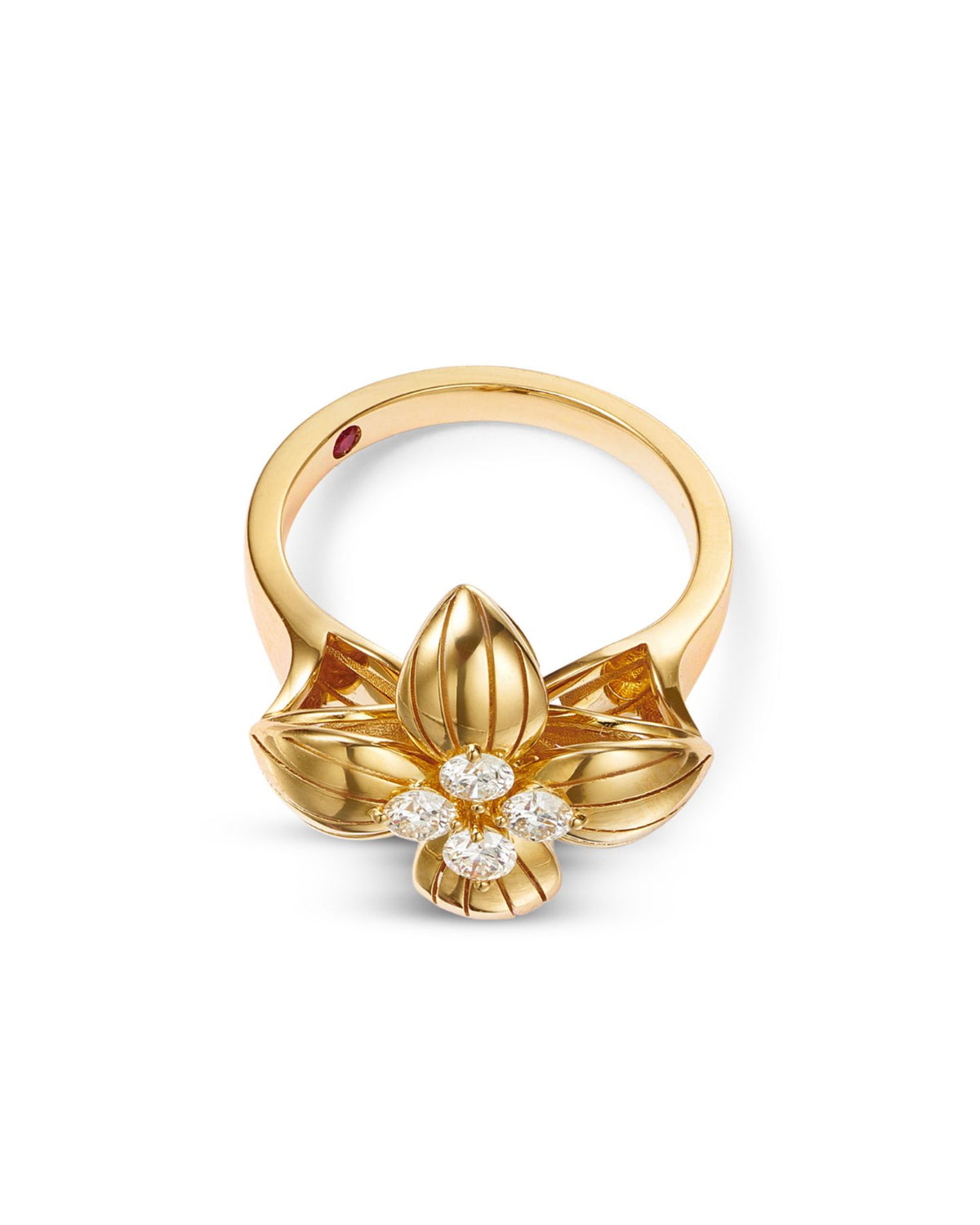 18K Yellow Gold Love in Verona Diamond Flower Ring - Exclusive