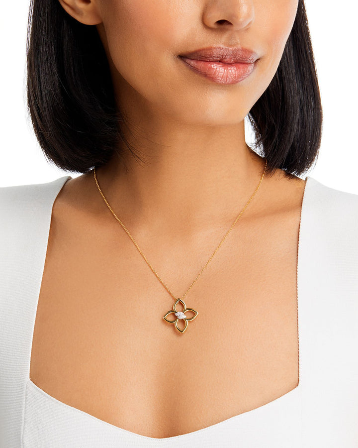 18K Yellow Gold Cialoma Diamond Flower Pendant Necklace, 17'