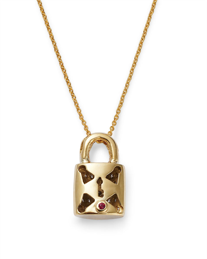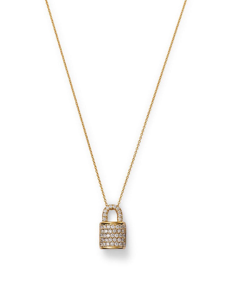 18K Yellow Gold Diamond Padlock Pendant Necklace, 16'