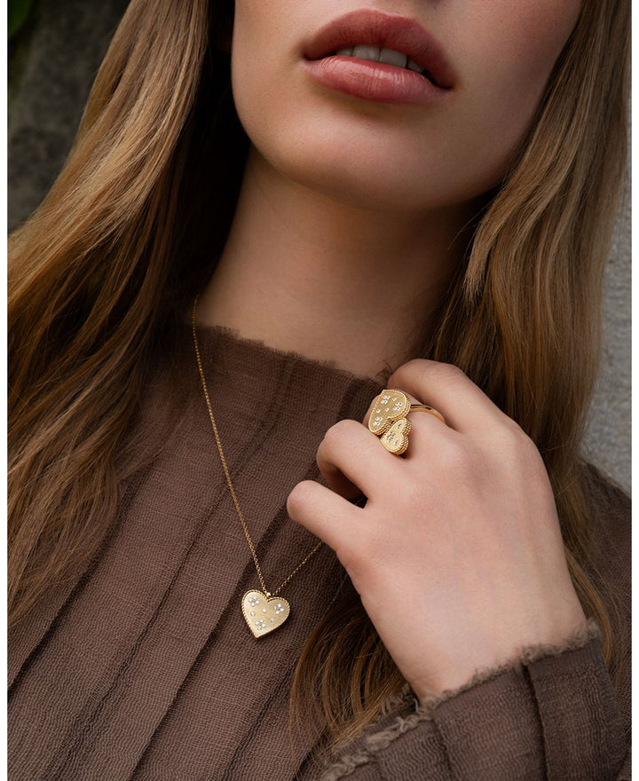This Venetian Princess Diamond Heart Pendant Necklace by Roberto Coin is a heartfelt design that combines satin-finished textures, rope detailing, and shimmering diamonds. Its sweet sentiment and timeless style make it a meaningful addition to your jewelry collection.